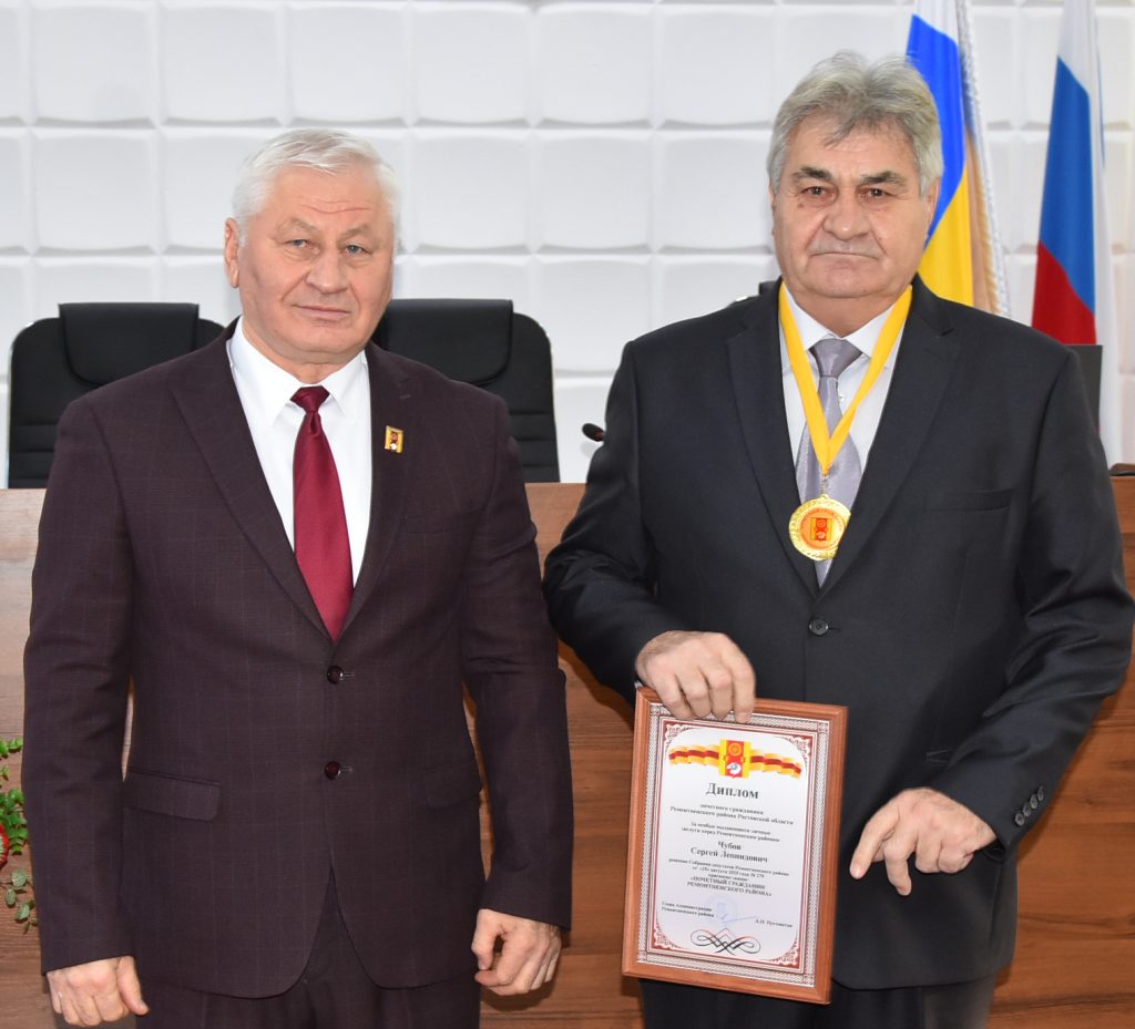 Глава Администрации района Анатолий Пустоветов вручил медаль, удостоверение и диплом Сергею Чубову. Звание присвоено за значительный вклад в организацию выборов на территории района, развитие избирательной системы и продолжительную безупречную службу. Сергей Леонидович, чей общий трудовой стаж составляет 42 года, продолжает работать членом Территориальной избирательной комиссии, активно взаимодействуя с партиями и общественными организациями. Он также является кавалером медали «За отвагу на пожаре» и Почетного знака ЦИК России «За заслуги в организации выборов».