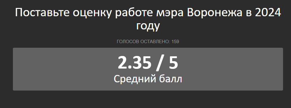 В прошедшем 2024 году воронежцы весьма низко оценили работу главы городского округа. Результат для на тот момент новоиспеченного градоначальника – скромные 2,35 балла из 5.