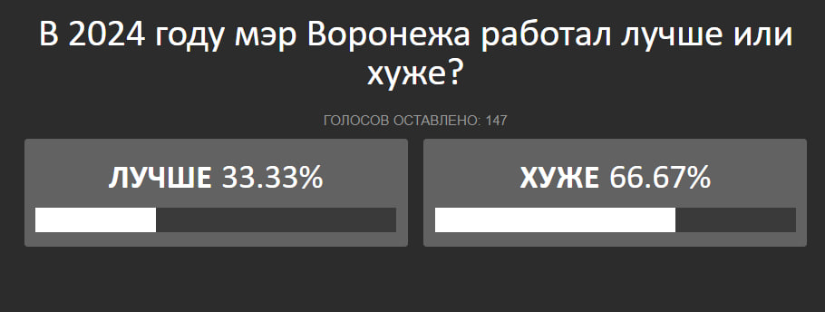Среди наших читателей, которые считают, что в 2024 мэр стал работать лучше, набралась лишь треть:
