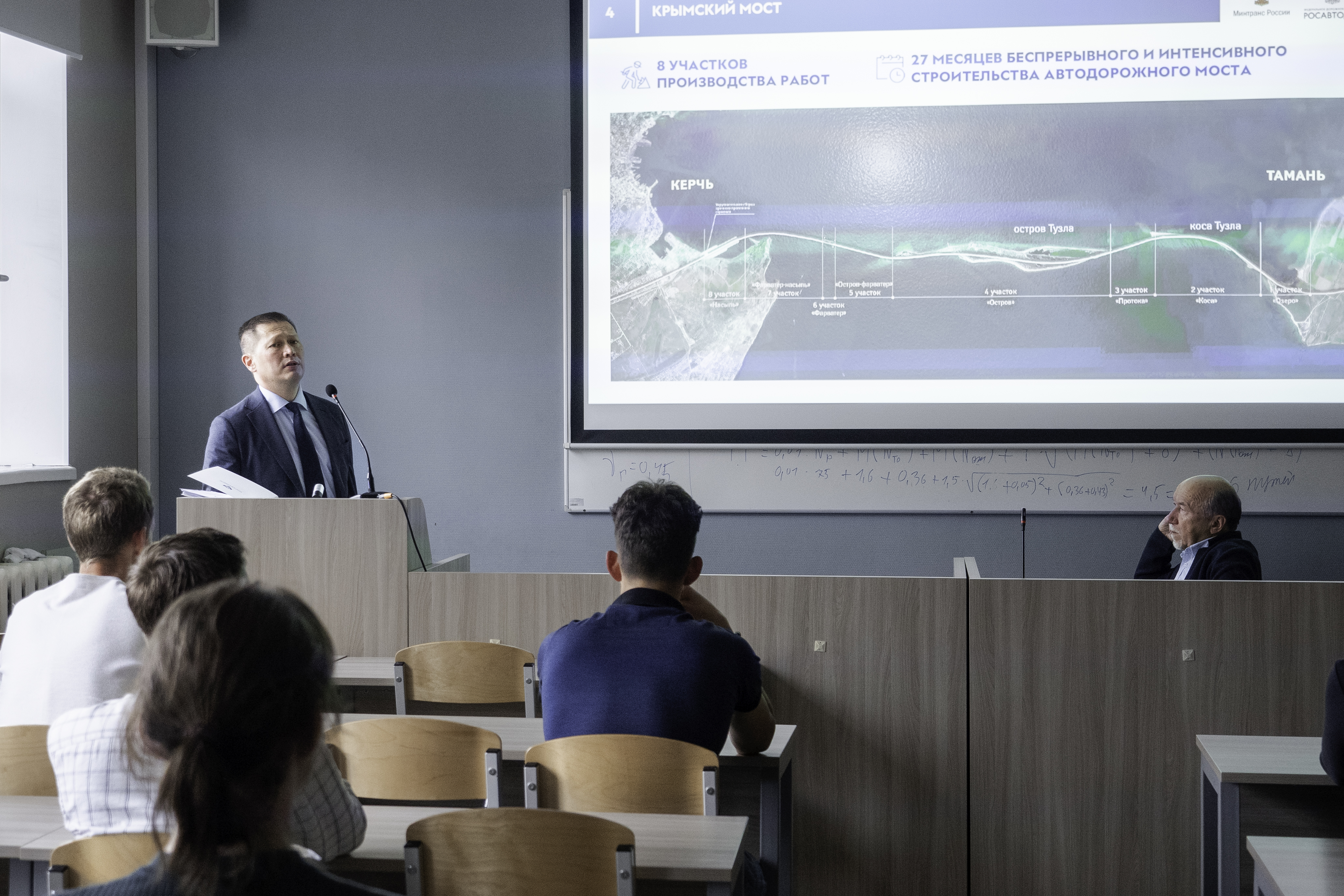 А в июне Роман Новиков уже в Санкт-Петербургском политехническом университете Петра Великого для студентов ведущих профильных вузов города прочитал лекцию об истории создания Крымского моста и поделился опытом и профессиональными знаниями в работе над крупными инфраструктурными проектами.
