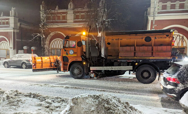 Городские коммунальные службы продолжают плановые работы по расчистке и вывозу снега, а также противогололёдной обработке. За прошедшие сутки вывезено 8 320 кубометров снега, использовано 425 тонн песко-соляной смеси и 34 тонны реагента. Особое внимание уделяется подходам к социальным объектам, тротуарам и дорогам, по которым курсирует общественный транспорт.