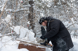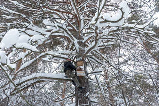 В установке домиков помогал приглашенный специалист из Новосибирска Олег Ширяев, имеющий большой опыт работы по сохранению популяции совообразных.