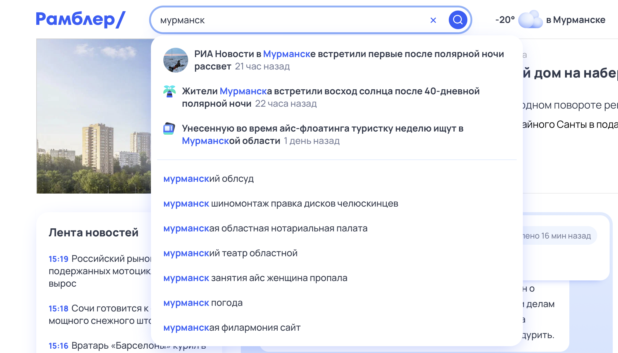 В поисковике «Рамблер» запросы куда интереснее: там ищут информацию про мурманский облсуд.