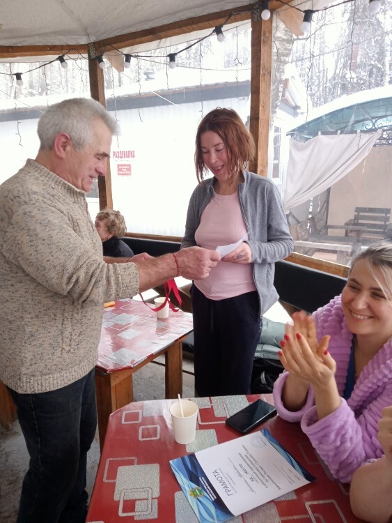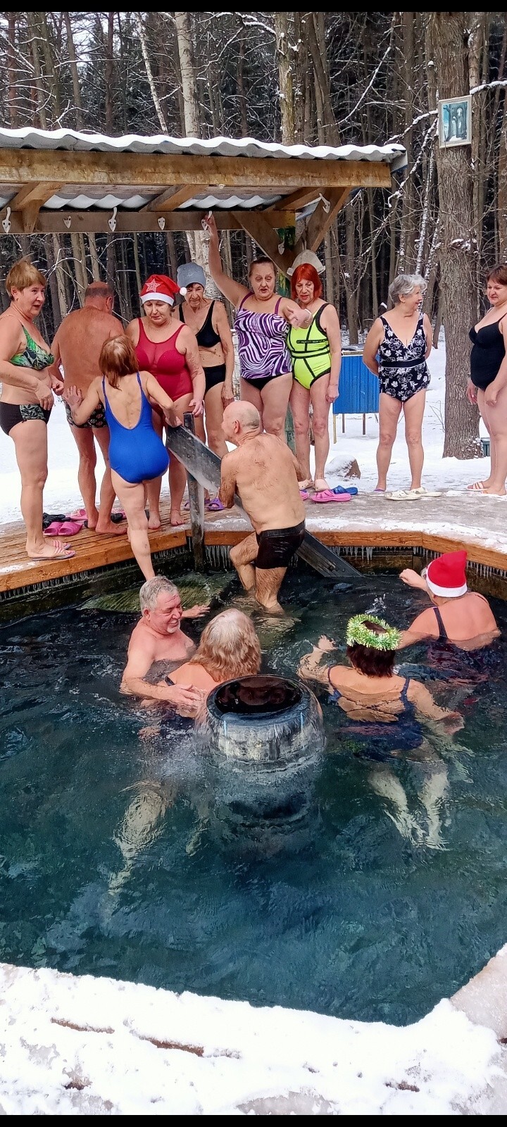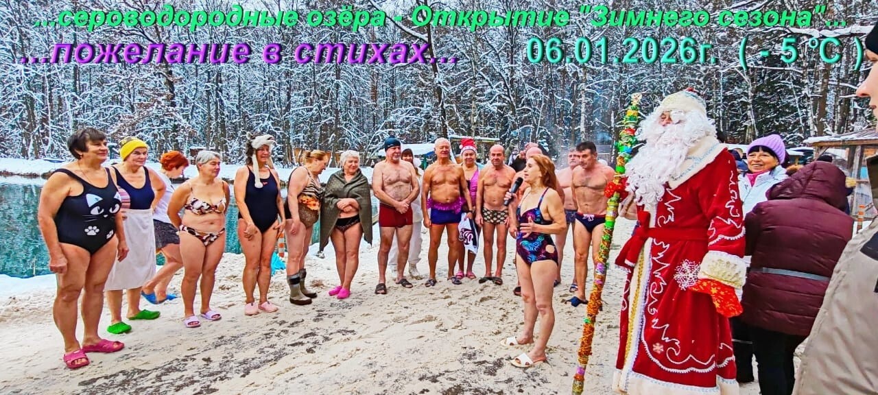 Михаил Кардаполов от имени Совета Ветеранов спорта поздравлял участников с наступившим 2026 годом, а Дед Мороз дарил подарки и традиционное купание в купели.