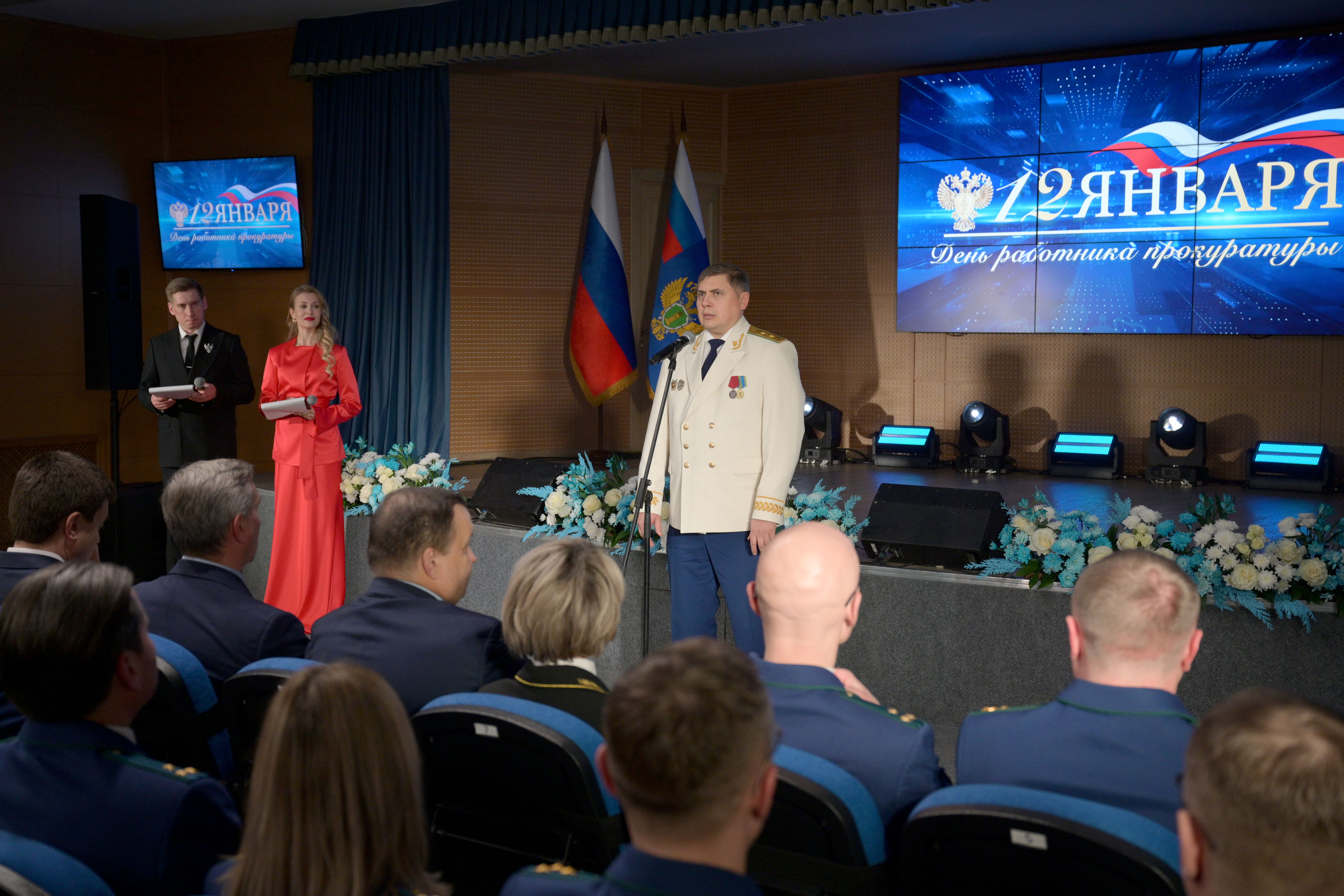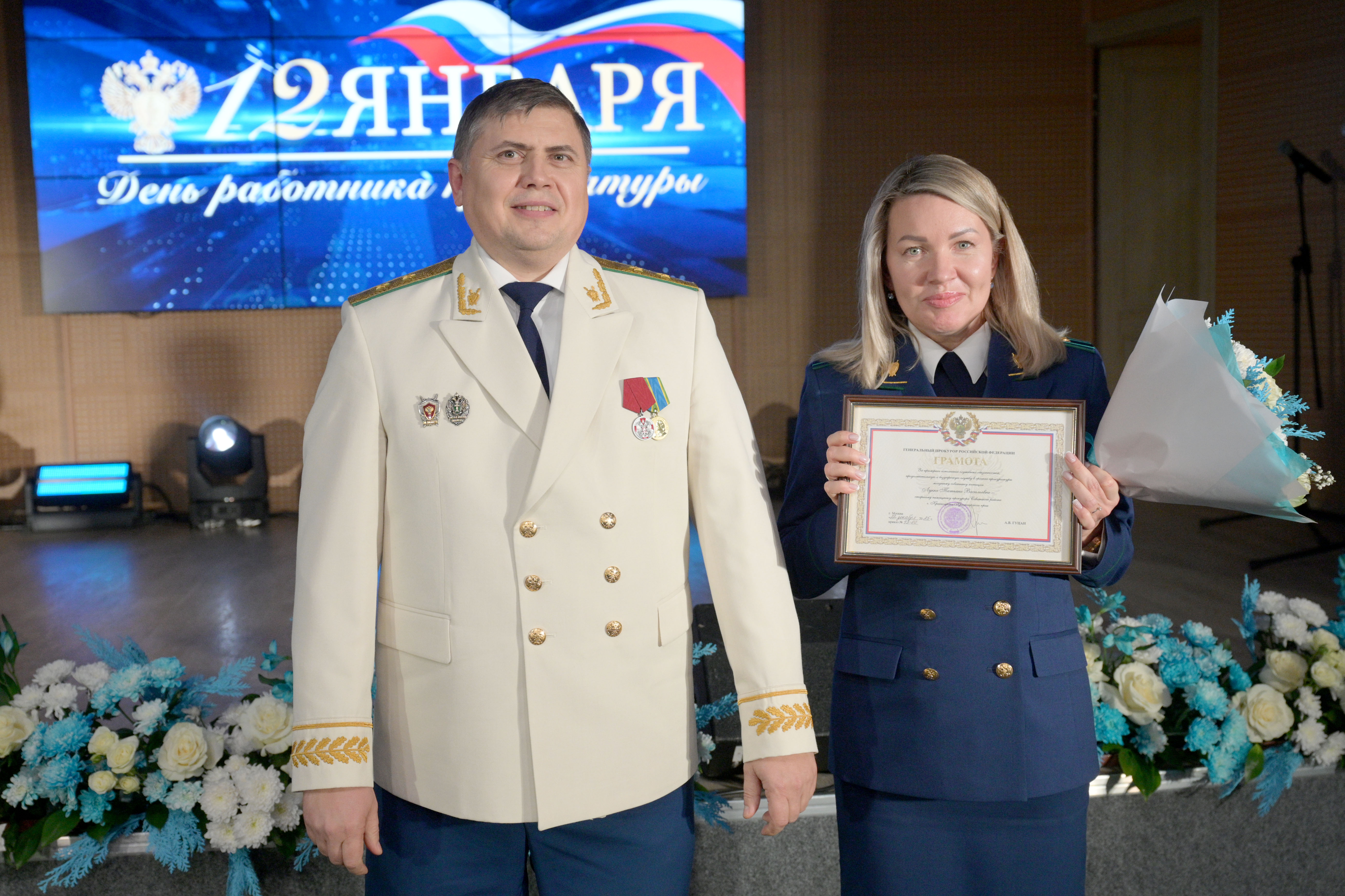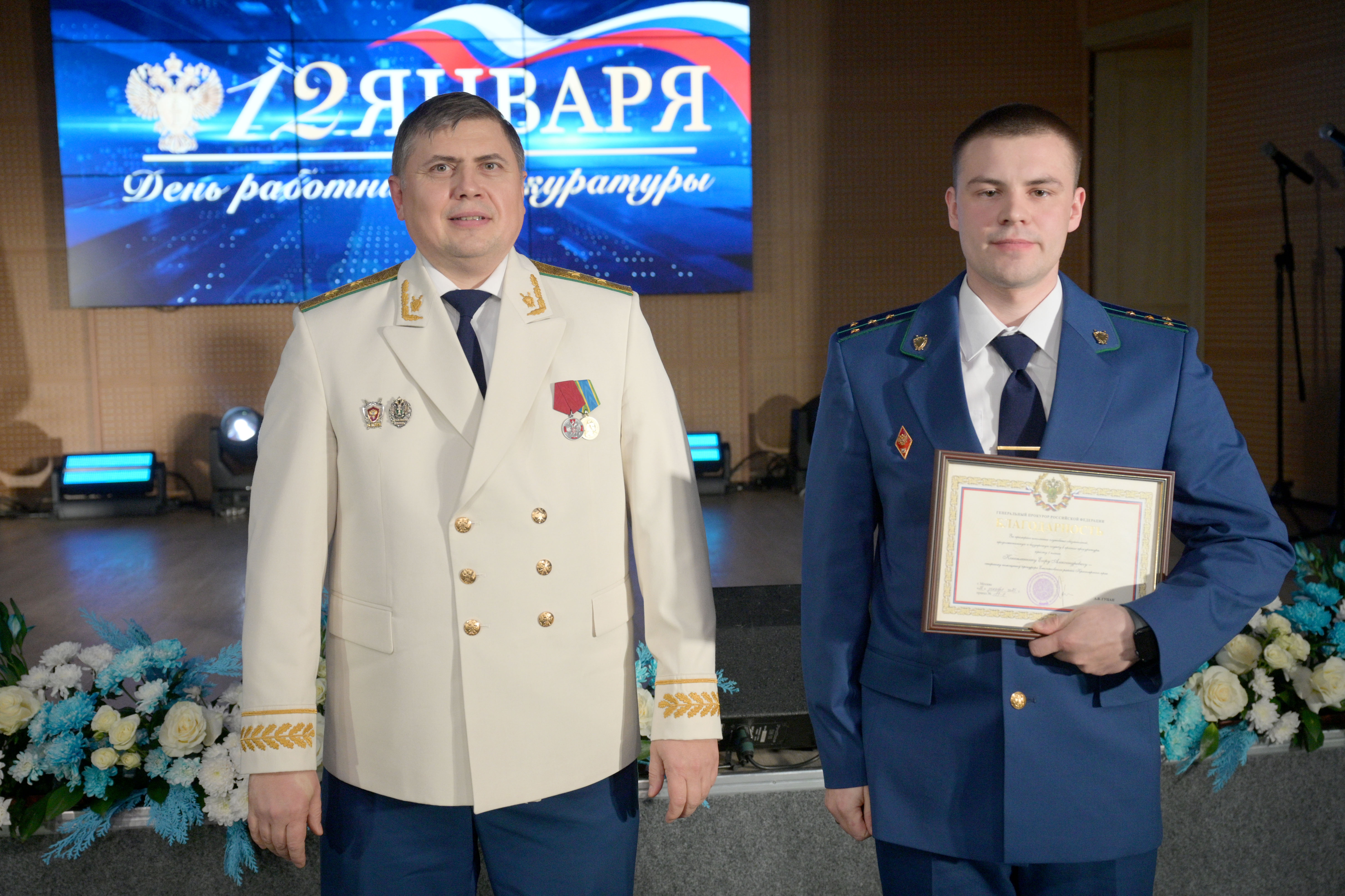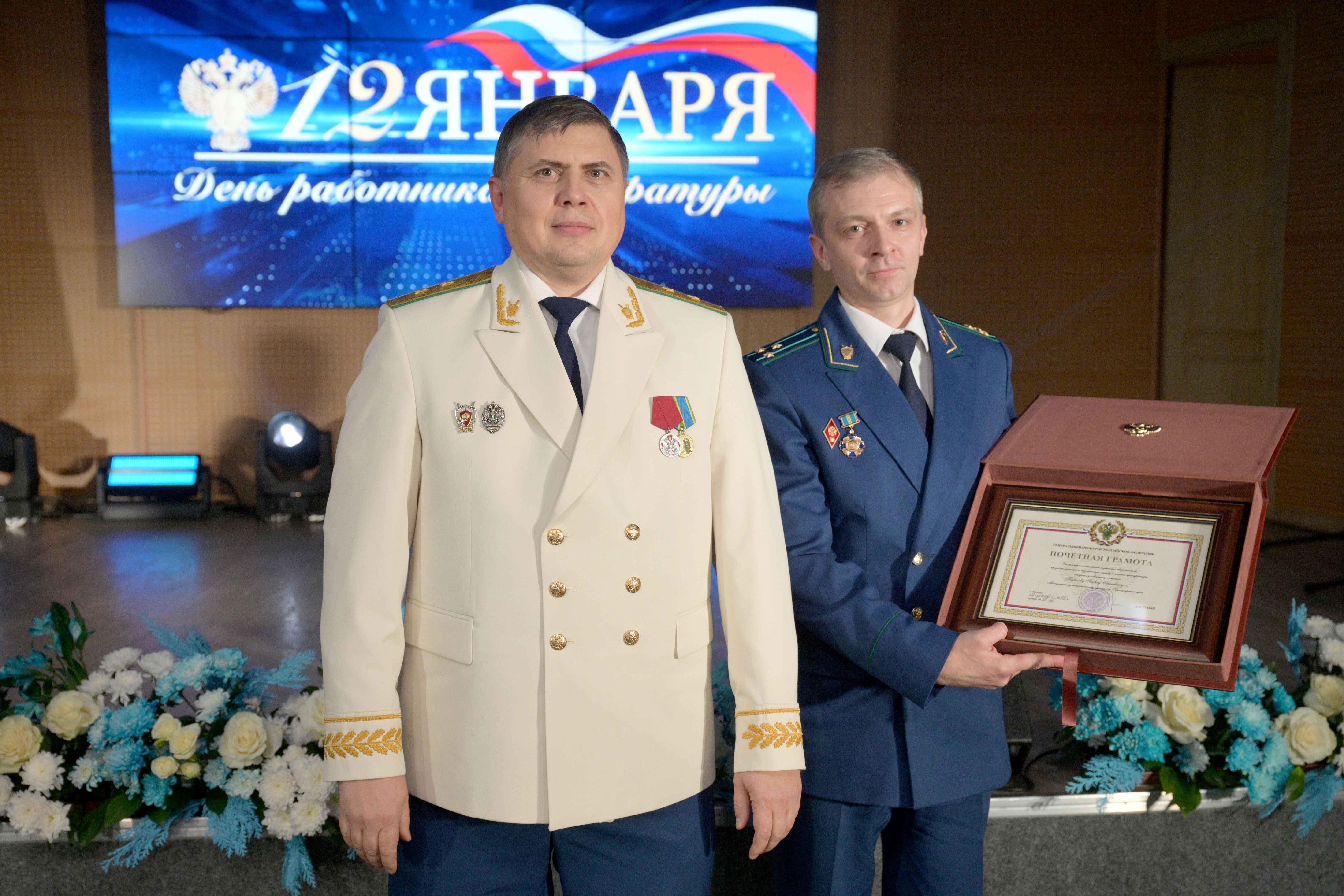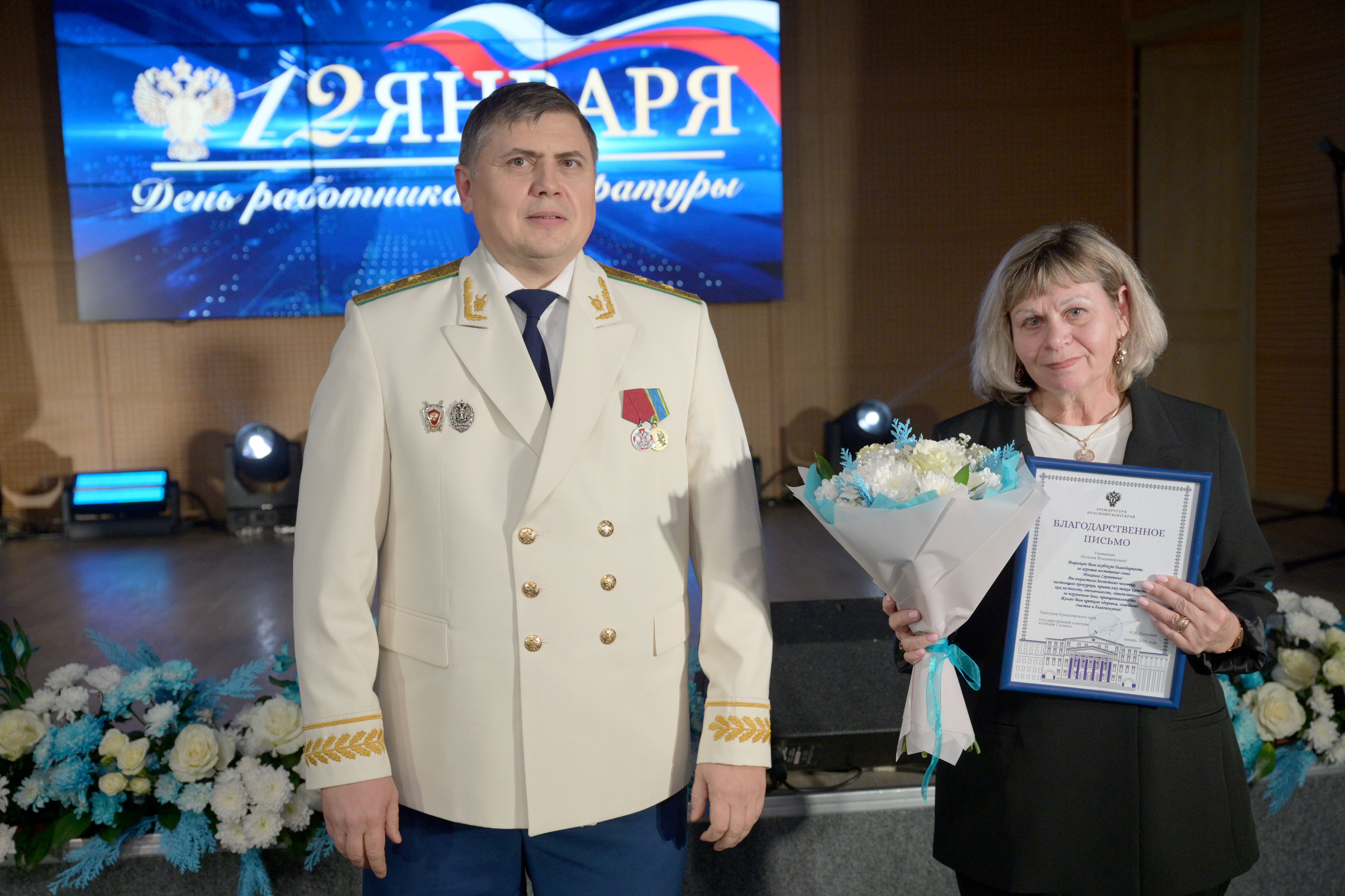 Мероприятие открыл прокурор Красноярского края Роман Тютюник. Он поздравил сотрудников и ветеранов прокуратуры с профессиональным праздником и поблагодарил за проделанную работу. В торжественной обстановке Роман Тютюник вручил награды Генерального прокурора России 33 сотрудникам и ветеранам за примерное исполнение служебных обязанностей, заслуги в деле укрепления законности и правопорядка. Отличившиеся работники также поощрены Губернатором края, председателем Законодательного Собрания края. Прокурор края вручил благодарственные письма родителям прокурорских работников за достойное воспитание сыновей и дочерей.