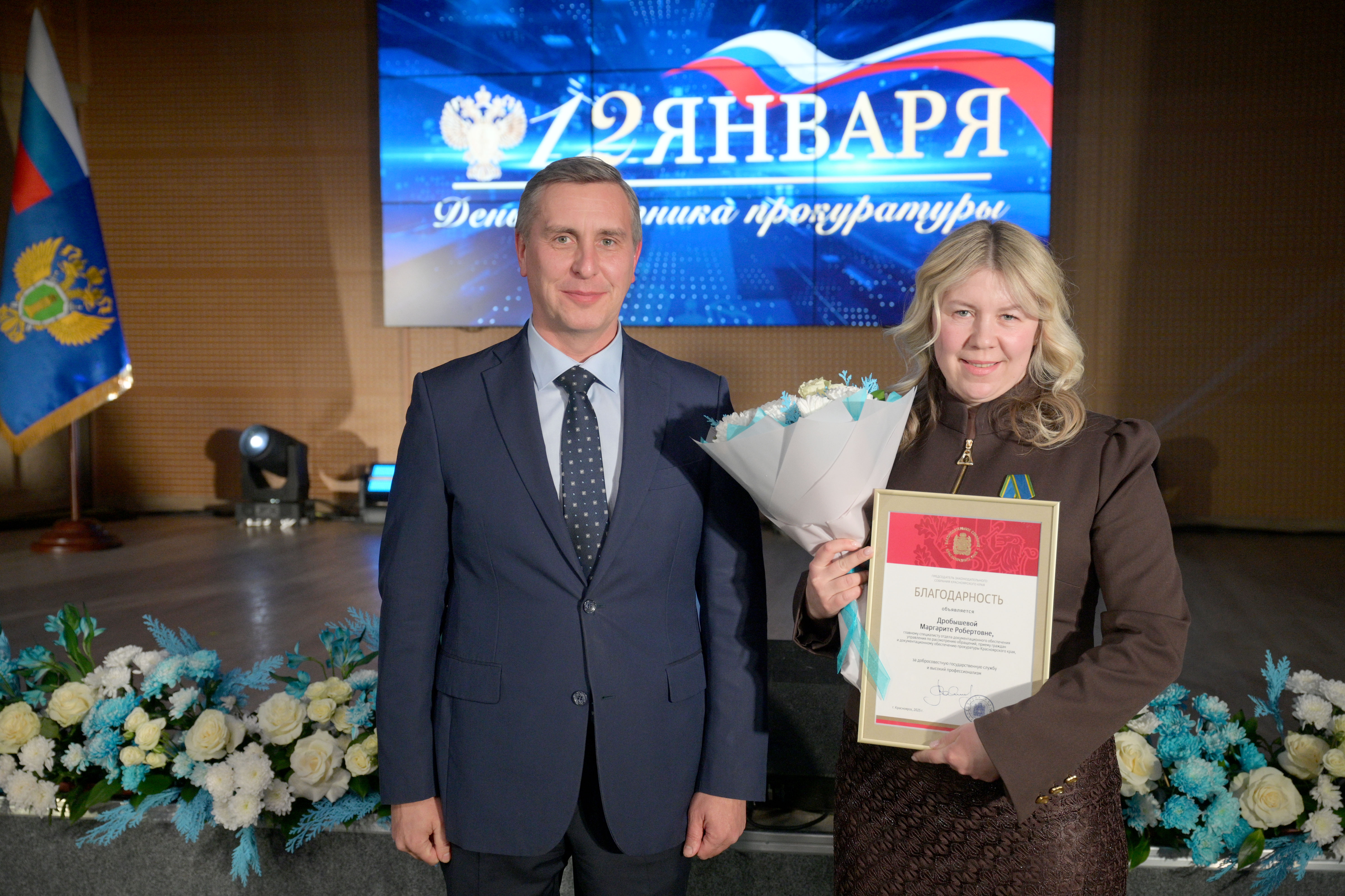 • главному специалисту отдела документационного обеспечения управления по рассмотрению обращений, приему граждан и документационному обеспечению прокуратуры края Маргарите Дробышевой