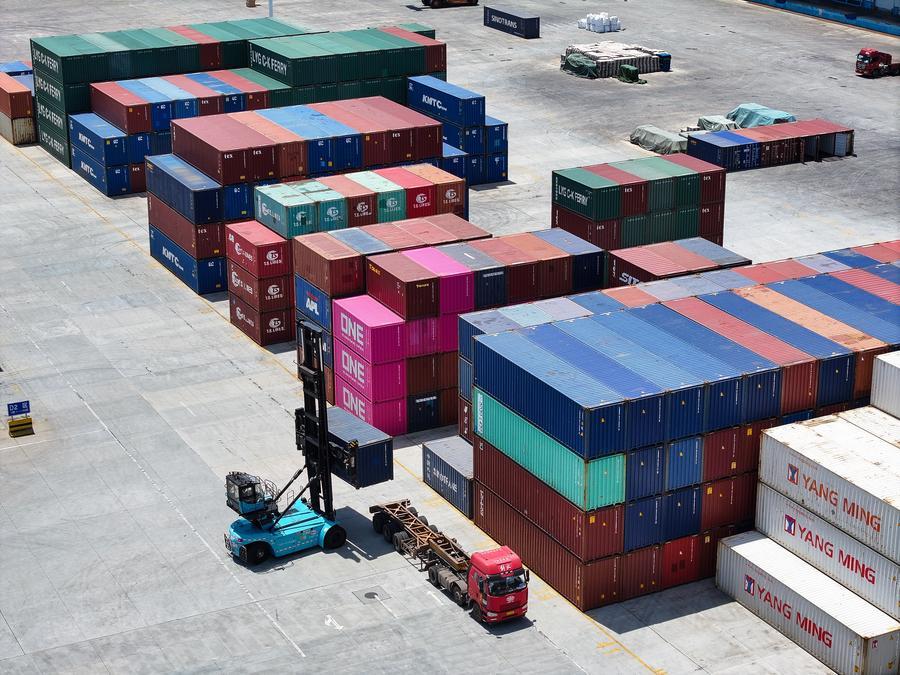 26 июня 2024 года, контейнерная площадка в международном логистическом парке ШОС в городе Ляньюньган /пров. Цзянсу, Восточный Китай/. /Фото: Синьхуа/