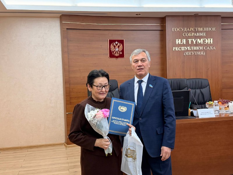 1. За заслуги в области социально-экономического развития РС(Я) Почётной грамотой Государственного Собрания (Ил Тумэн) Республики Саха (Якутия) награждается Нифонтова Маргарита Сергеевна, помощник Государственного советника Республики Саха (Якутия).