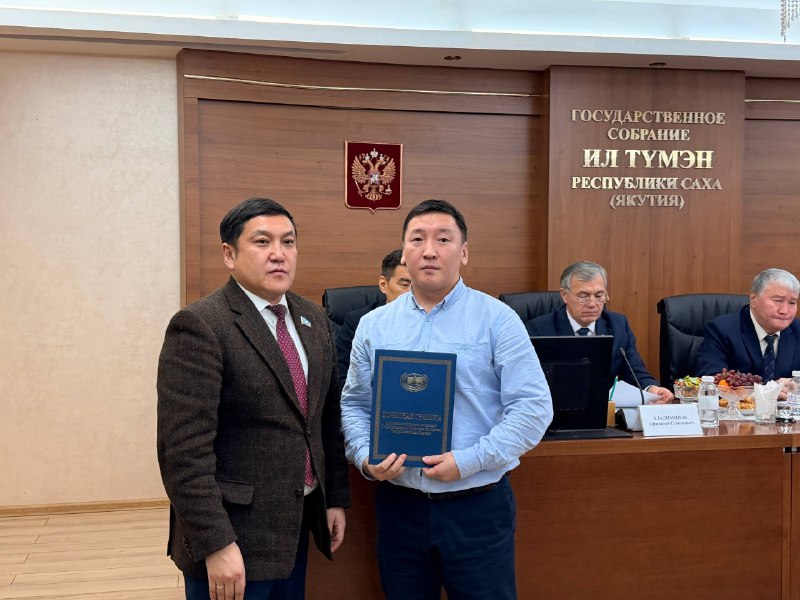 Благодарственные письма первого заместителя Председателя Государственного Собрания (Ил Тумэн) Республики Саха (Якутия) за создание детского телеканала «Тооку», вклад в сохранение и пропаганду родного языка народа саха и коренных народов Севера Республики Саха (Якутия) вручены: