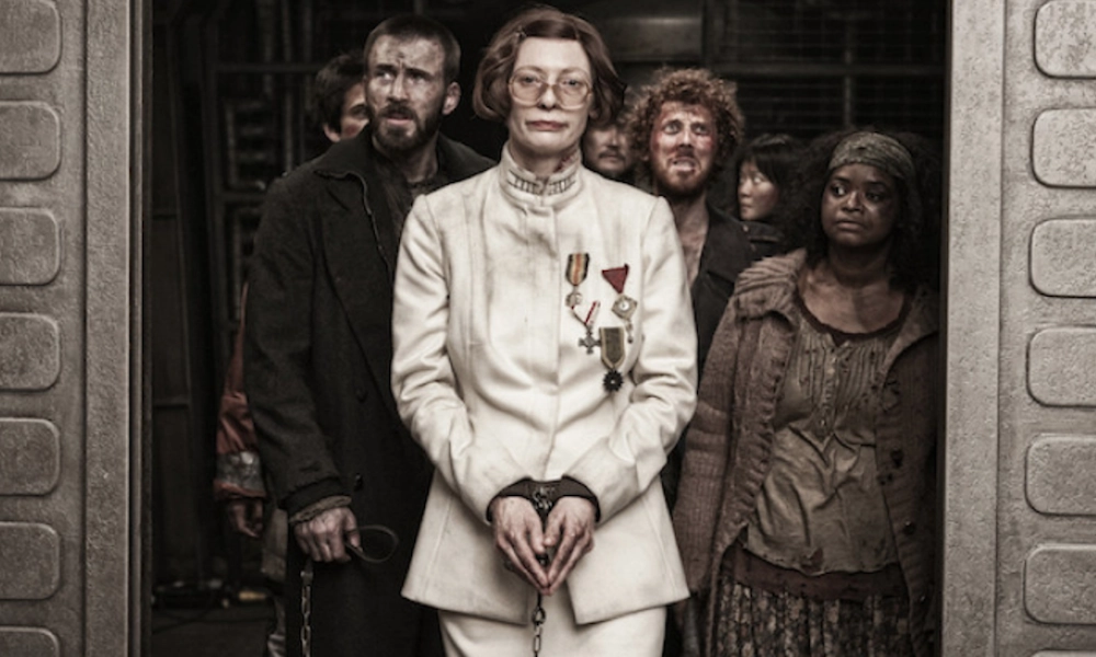 Поезд, в котором сгрудились остатки человечества, выжившего после техногенной катастрофы, мчит по рельсам в заснеженном пространстве белого замерзшего мира. И стремительно, с невероятной энергией, на всех парах мчится вдумчивое фантастическое кино корейского режиссера Пон Джун-хо с решительным Крисом Эвансом, неузнаваемой в гриме Тильдой Суинтон и британским ветераном Джоном Хертом.