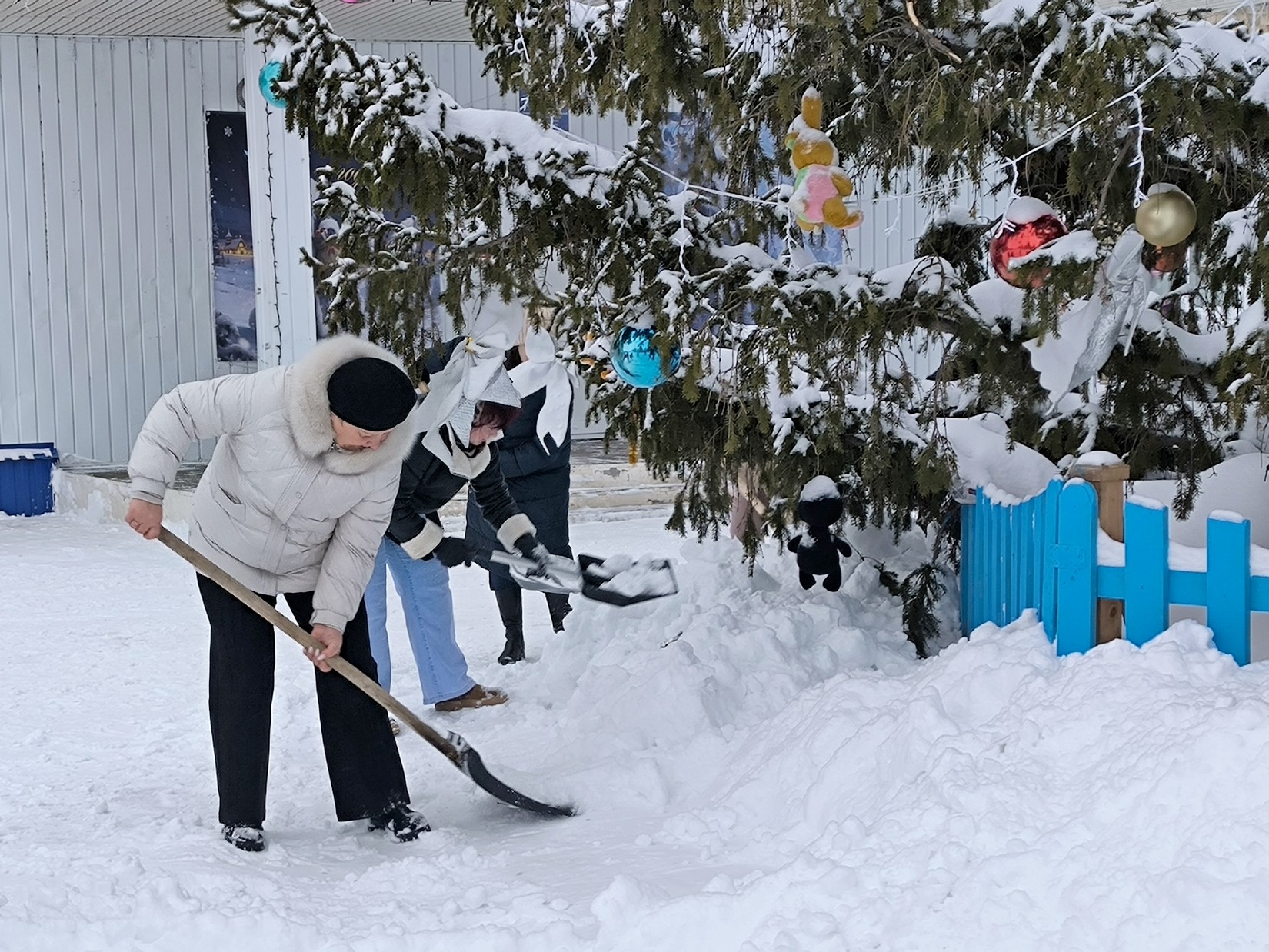 Работники администрации Лопатинского района, во главе с руководителем Ольгой Лапшиной, провели очистку от снега прилегающих к администрации территорий и памятных мест.