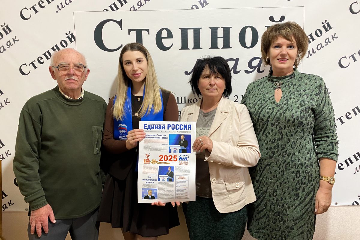 В Курском округе единороссы поздравили коллектив газеты «Степной маяк». Член партии Анастасия Хлебникова пожелала журналистам создания значимых материалов.