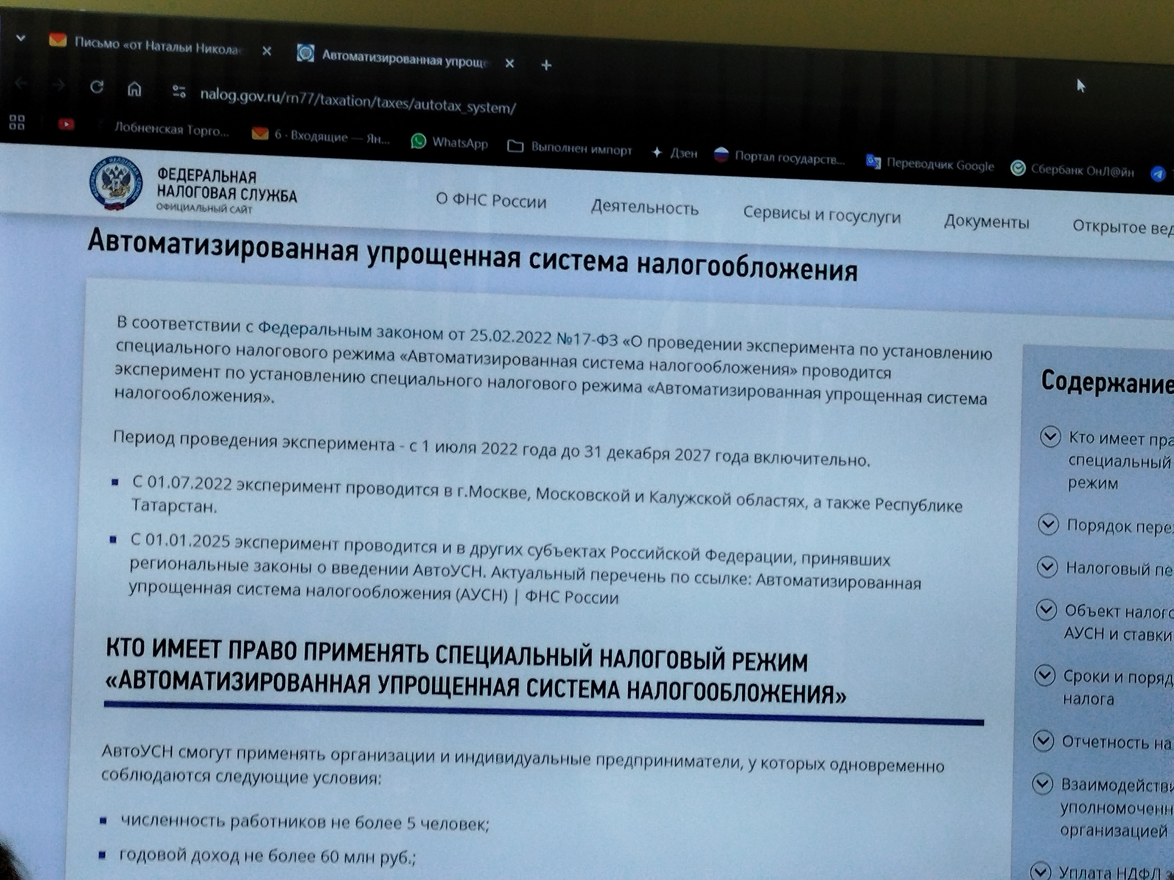 ТЕМА: «Автоматизированная система налогообложения (АУСН). Особенности применения субъектами предпринимательства.» На встрече присутствовала представитель налоговой службы Екатерина Рубцова , которая подробно остановились на преимуществах автоматизированной упрощенной системы налогообложения – специальном налоговом режиме, введенном в 2022 году. АУСН доступна организациям и ИП при соблюдении определенных условий, разобрали основные темы, а именно:
