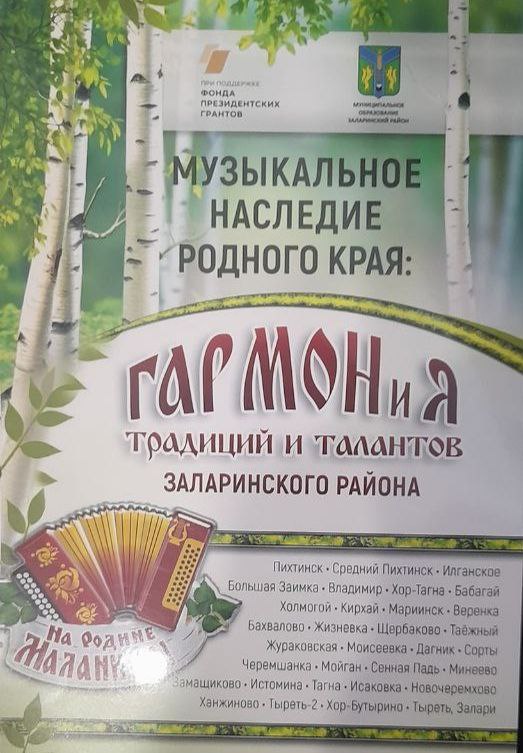 В рамках гранта музей издал реестр народных гармонистов Заларинского района, в который вошли почти 300 имён земляков и большое количество их фотографий. Напомним, что в 2021 году в селе Троицк был открыт памятник народному музыканту, уроженцу этих мест, слепому баянисту Ивану Маланину.