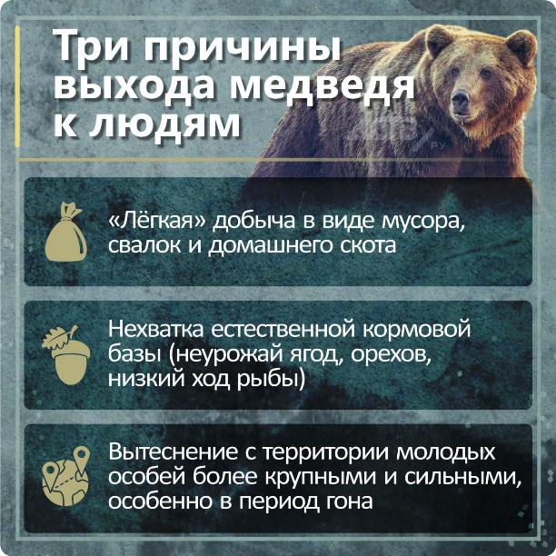 "В этом году, как в 2017 или в прошлом году на Камчатке, сложилась уникальная ситуация с сочетанием негативных факторов. В их числе кризис естественной кормовой базы (низкий ход горбуши из-за тёплой воды в реках и неурожай кедрового стланика), а также доступность "лёгкой" добычи - свалки, мусор", - добавили в агентстве лесного и охотничьего хозяйства области.