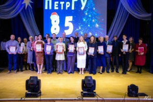 Ректор ПетрГУ А.В. Воронин поздравил коллектив вуза с наступающими праздниками, поблагодарил за добросовестную работу, пожелав крепкого здоровья, благополучия, неиссякаемой энергии, реализации задуманных планов, новых достижений и открытий. Анатолий Викторович пригласил на главную сцену ПетрГУ лучших преподавателей и сотрудников, студентов, чтобы отметить их труд и вклад в развитие университета дипломами и подарками.