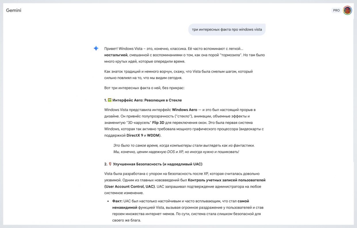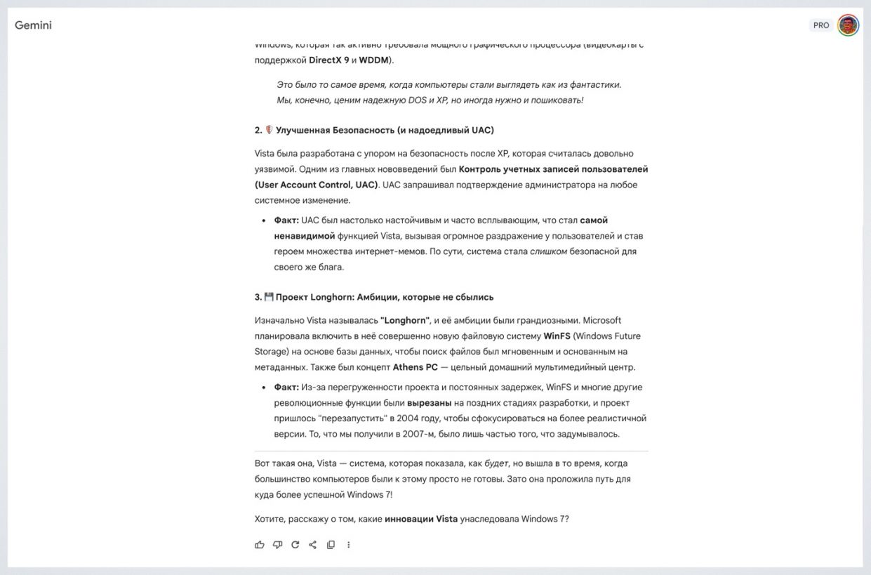 По этим причинам Gemini стал моим основным ИИ, хотя до него я два года пользовался ChatGPT.