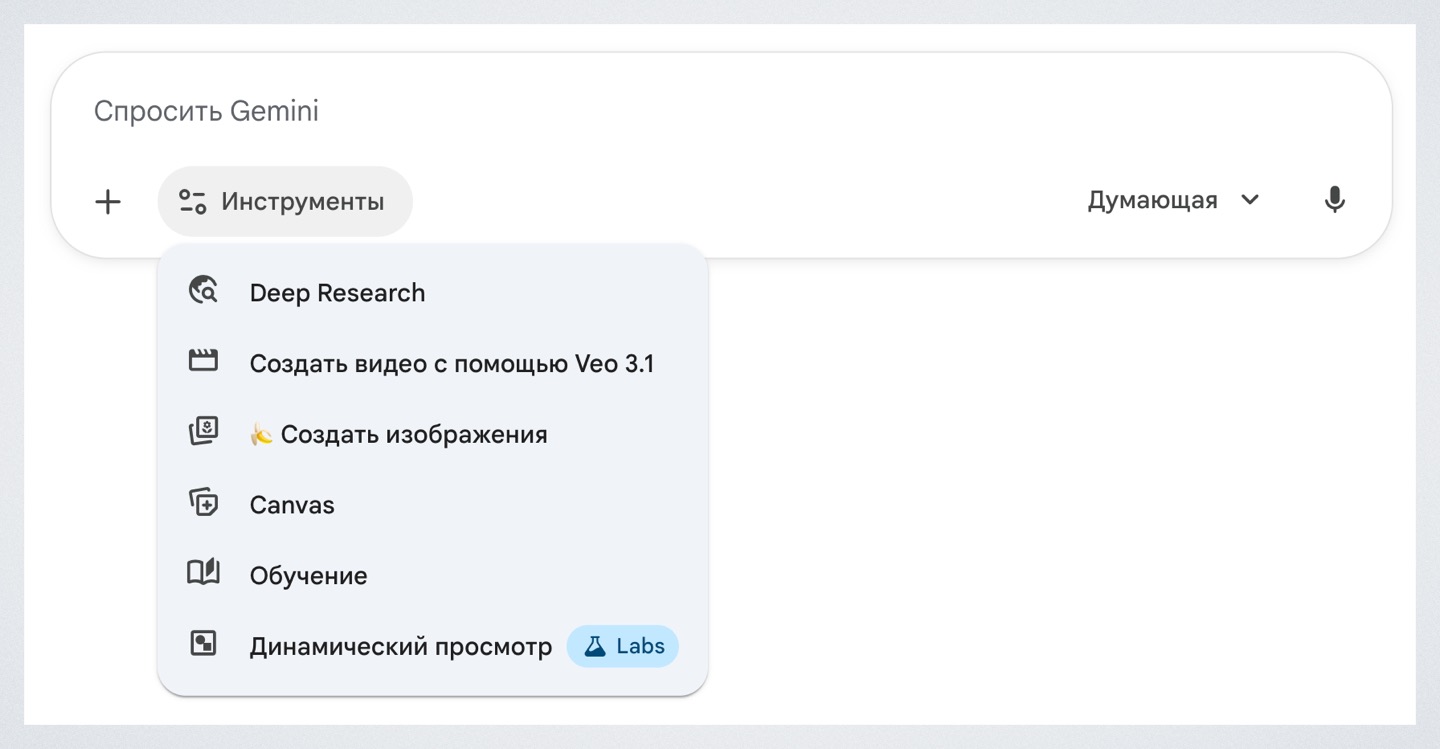 Скорость работы была одной из причин, почему я перешёл с ChatGPT на Gemini. - В Gemini больше интересных функций для работы с контентом. Отдельно отмечу, что Deep Research в Gemini работает быстрее, чем в ChatGPT, выдает более объемные ответы и лучше следует инструкциям.