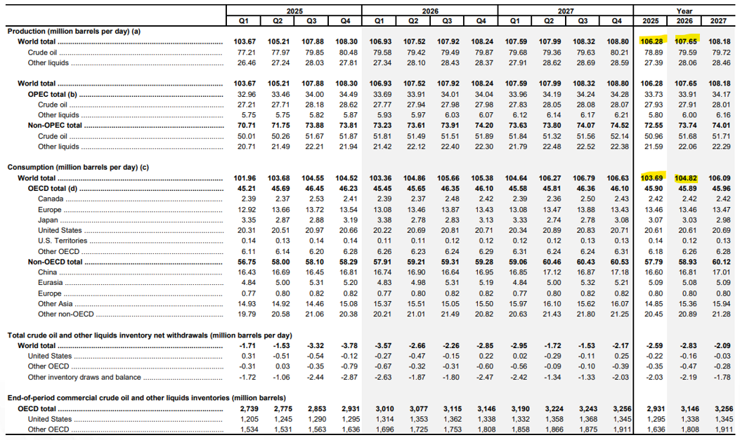 По итогам прошлого 2025 г. профицит по мнению EIA составил 2,59 mbd.