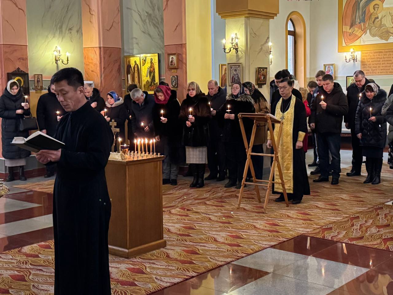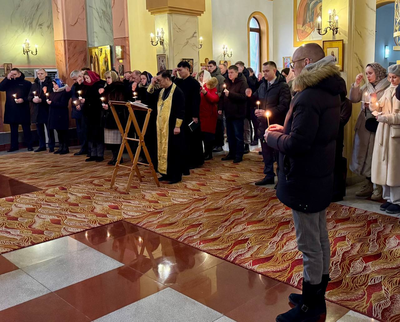 Служба коммуникации ОВЦС, 14.01.2026. 14 января 2026 года, на 40-й день после кончины Чрезвычайного и Полномочного посла Российской Федерации в Корейской Народно-Демократической Республике Александра Ивановича Мацегоры, в храме Святой Живоначальной Троицы города Пхеньяна была совершена заупокойная служба.