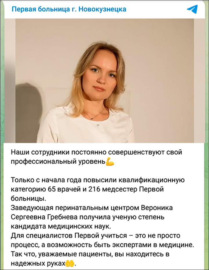 Скрин поста группы "Первая больница Новокузнецка" https://vk.com/wall-203285773_2781