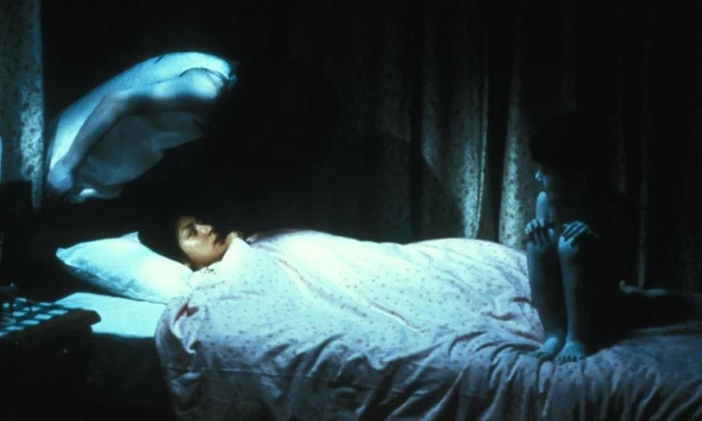 Наконец, не менее легендарный жутик (подобно «Звонку» и «Темным водам», получивший собственный англоязычный ремейк), совместивший традиции опусов о домах с паранормальными явлениями и честный анализ зла как неснимаемой анафемы, которой предается порочный социум. В качестве пары онре у последователя Накаты по имени Такаси Симидзу – молодая женщина и 10-летний пацаненок в бюджетном гриме, что постоянно пребывают в некогда своем родовом гнездышке и в прямом смысле слова до смерти распугивают незваных гостей, нежели являются в темноте из ниоткуда. Возмущенные мертвые души Каяко и Тосио посиживают в уголках дома и поскрипывают тяжелой поступью на деревянной лестнице, ведущей к обескураживающей правде об их мучительной смерти.