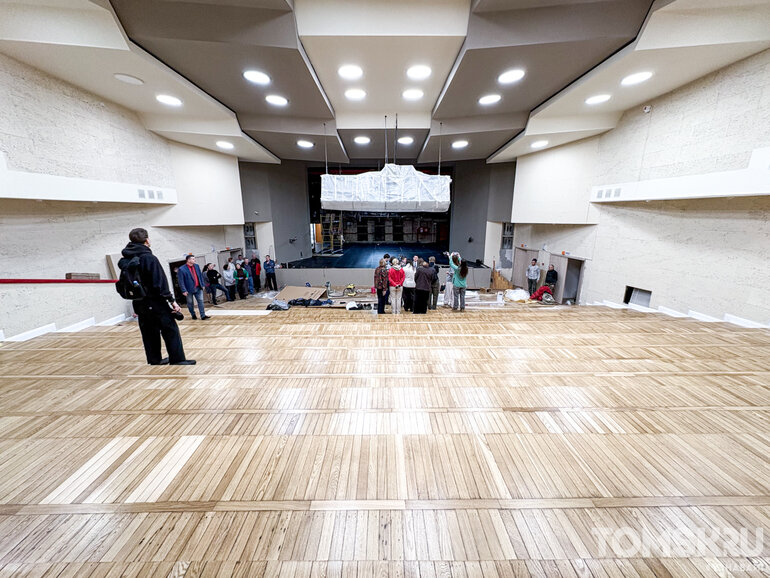 Сегодня мэр Томска Дмитрий Махиня посетил учреждение и проверил, как проходит завершающийся ремонт в концертном зале Дворца.
