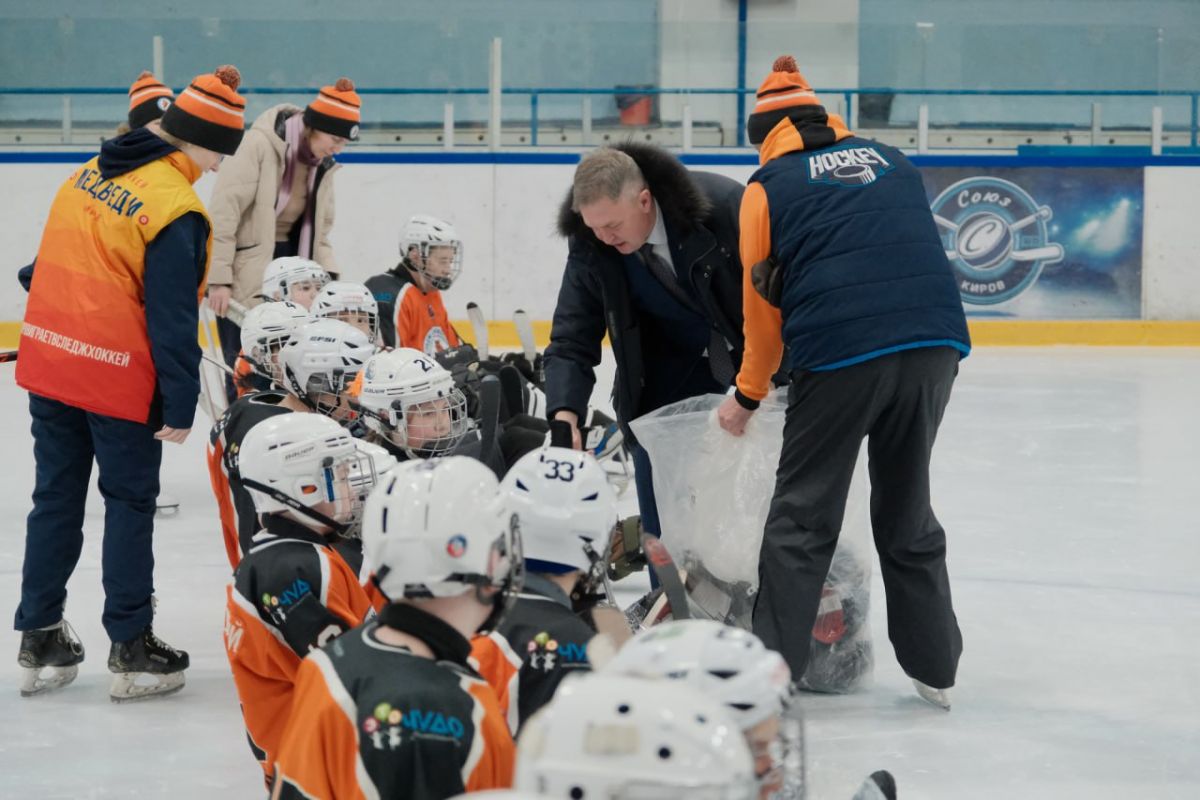 В Кировской области первый замсекретаря реготделения партии Роман Береснев вручил детской команде по следж-хоккею «Медведи» комплект снаряжения.