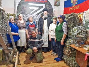 Отец Андрей освятил маскировочные сети, подготовленные к отправке в зону СВО, и провёл с волонтёрами духовную беседу.