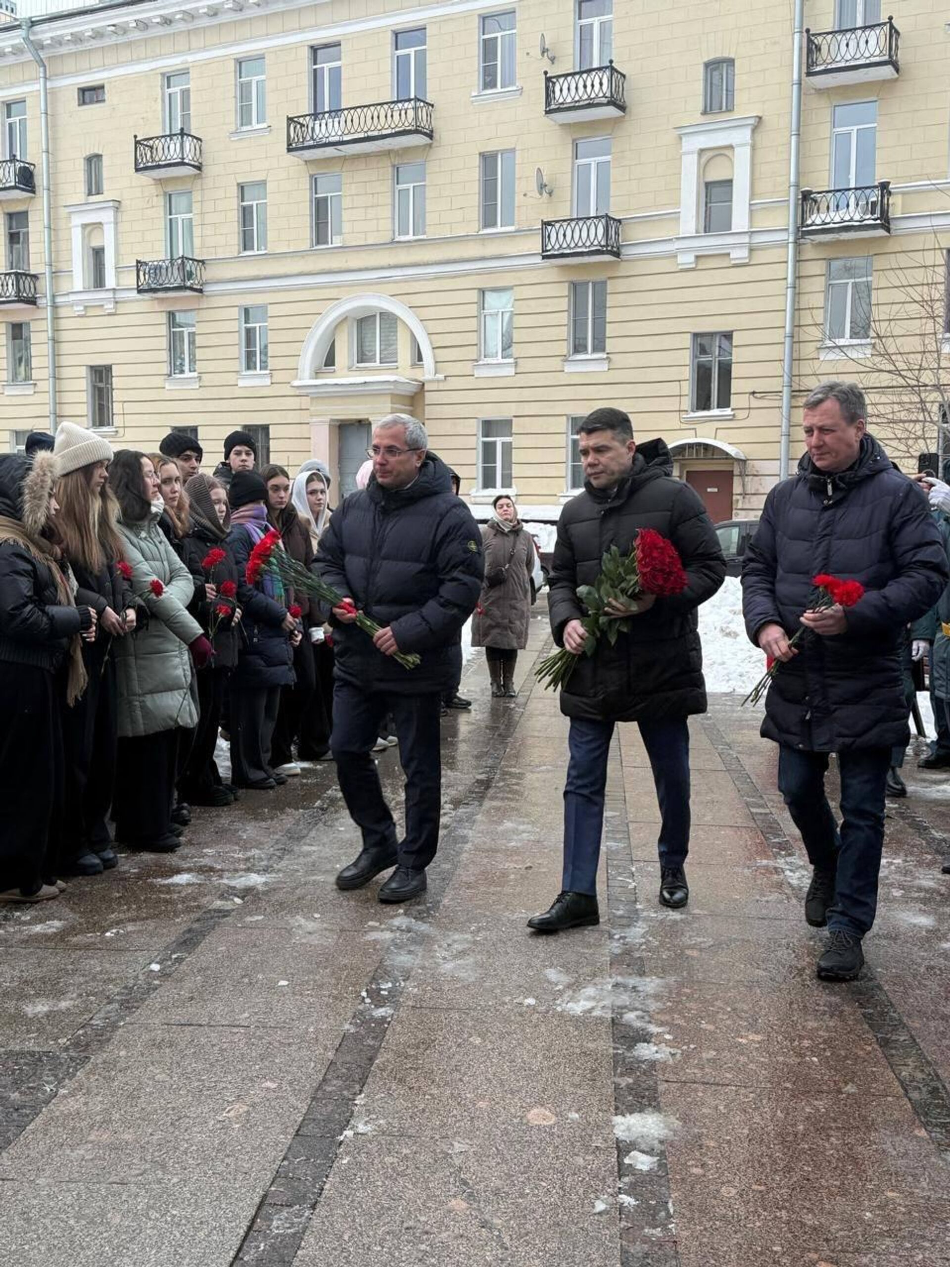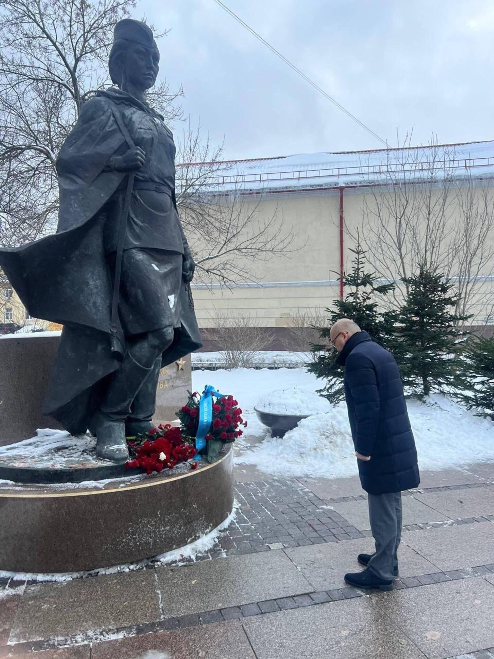 Посол Казахстана в России Даурен Абаев и Генконсул Казахстана в Санкт-Петербурге Дмитрий Михно возложили цветы к памятнику Алии Молдагуловой