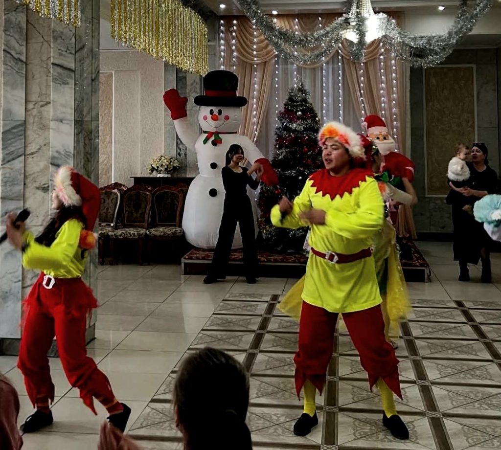 Особую праздничную атмосферу подарили артисты Жамбылского областного русского драматического театра, которые на благотворительной основе представили новогоднее театрализованное представление «Новогодний переполох». режиссёр -постановщик Отличник культуры Республики Казахстан Ольга Избасарова наполнила праздник радостью, смехом и настоящим рождественским волшебством.