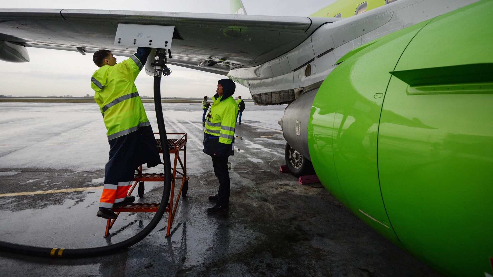 Заправка топливом самолета Embraer 170-LR авиакомпании S-7, архивное фото