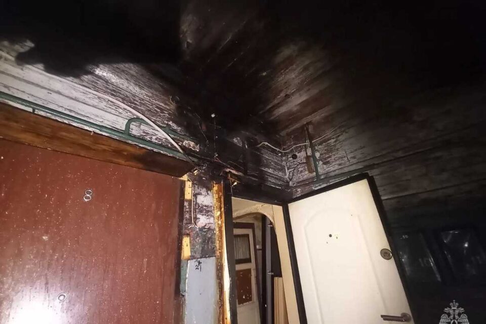 Пламя охватило входную дверь жилого помещения на площади 2 квадратных метра. В числе эвакуированных оказалось трое детей. Для ликвидации огня задействовали 7 единиц техники и 33 сотрудника МЧС.