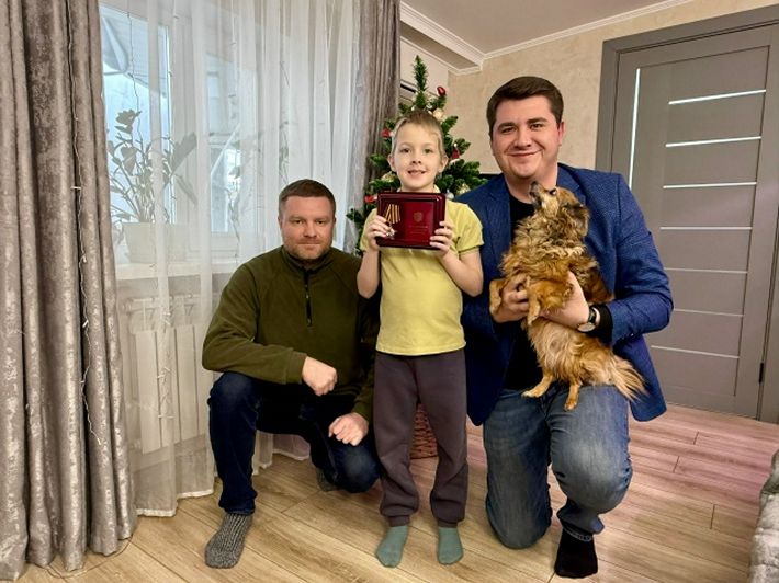 Они поздравили мальчика с наступившим новым годом, вручили ему сладкий подарок и памятную медаль – знак глубокого уважения и благодарности за подвиг его отца.