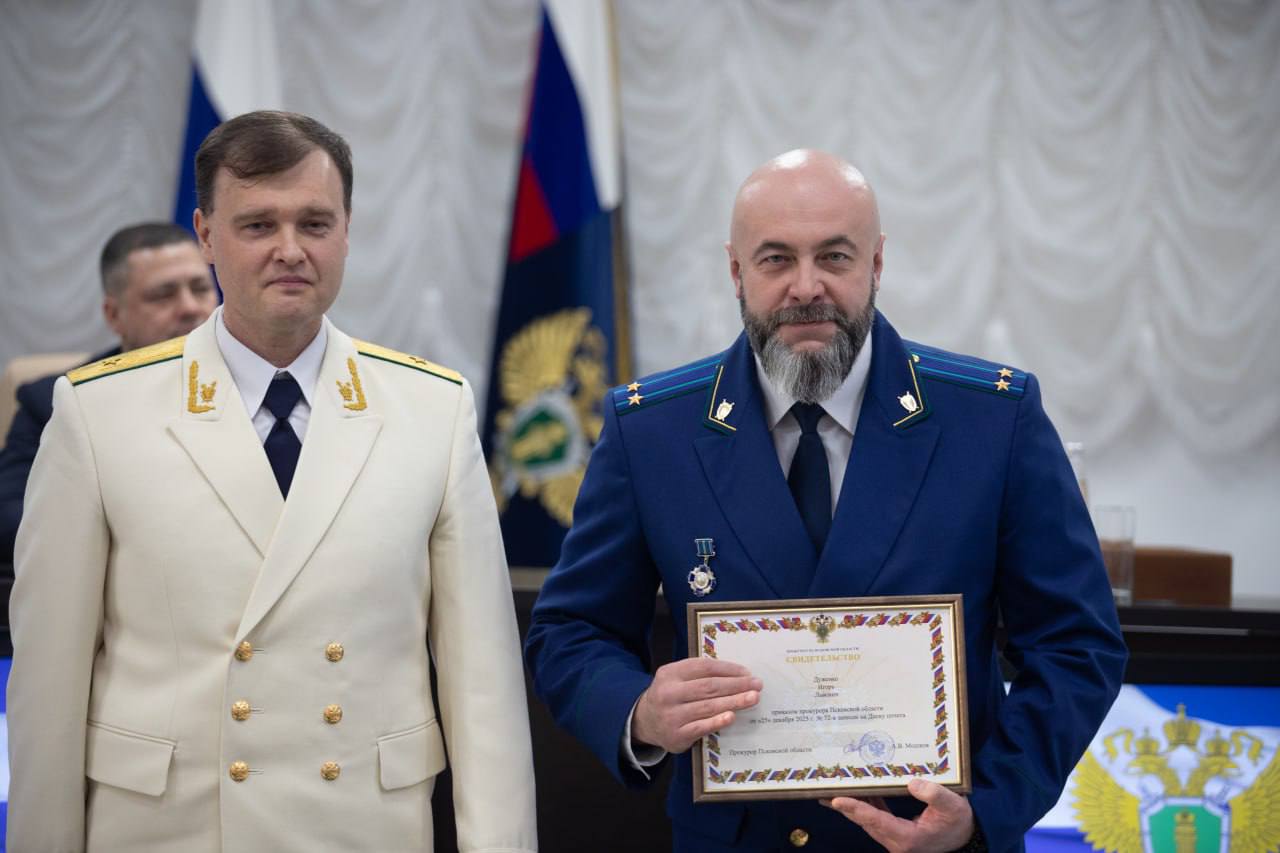 В актовом зале прокуратуры Псковской области 15 января прошло торжественное собрание, приуроченное ко Дню работника прокуратуры Российской Федерации. Мероприятие объединило действующих сотрудников надзорного ведомства, ветеранов службы, представителей органов государственной власти региона, судебной системы, правоохранительных и контролирующих органов, духовенства.
