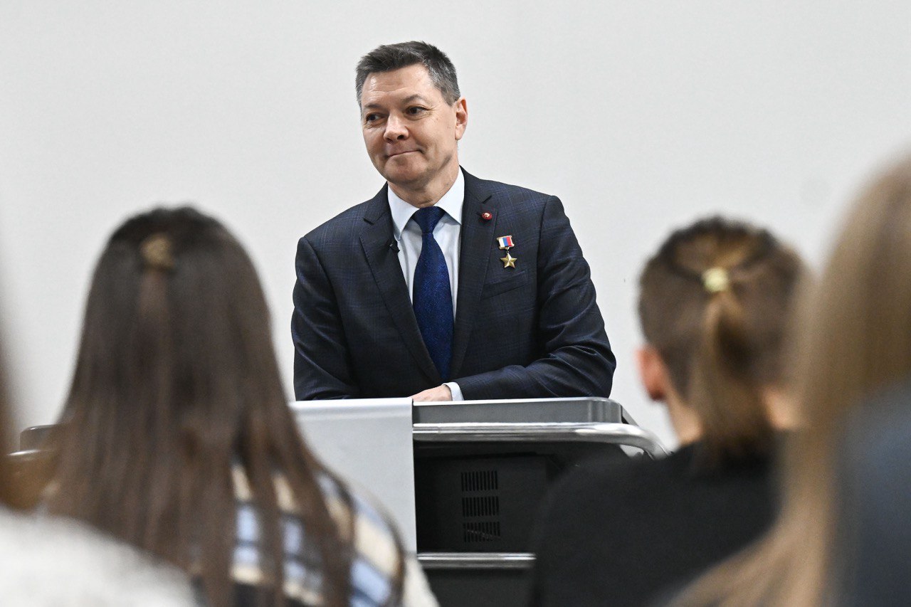 Своеобразный космический урок старшеклассникам преподали Герой России, лётчик-космонавт РФ, и.о. начальника Центра и командир отряда космонавтов, на счету которого 5 полётов, Олег Кононенко и космонавт Роскосмоса, уроженец Запорожья, бортинженер МКС-73 Алексей Зубрицкий, который месяц назад вернулся из первой орбитальной экспедиции.
