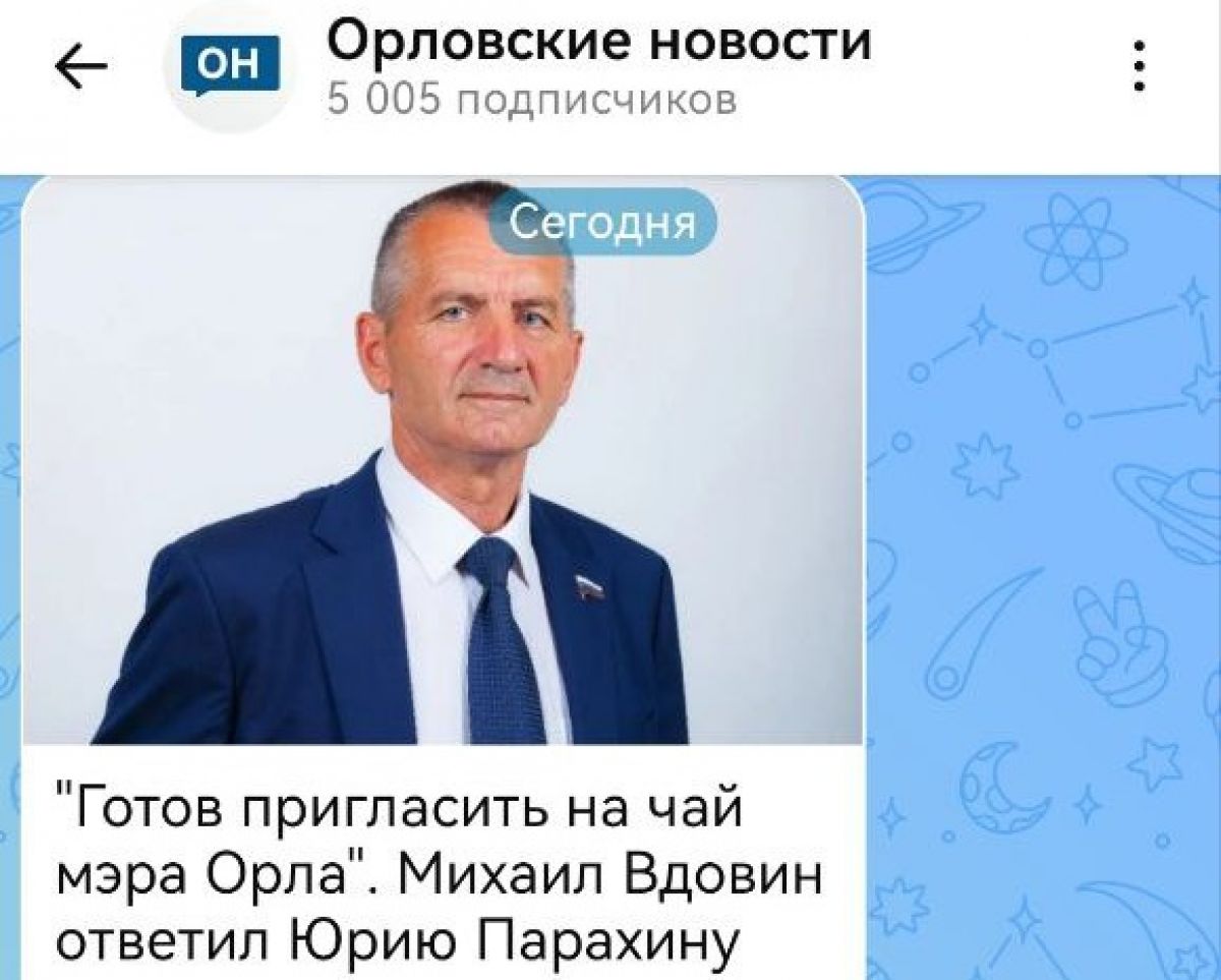 Число подписчиков канала "Орловских новостей" в мессенджере MAX превысило пять тысяч. Кстати, уже сейчас многую официальную информацию публикуют только в национальном мессенджере. В случае перебоев в работе иностранных соцсетей и мессенджеров именно MAX должен оставаться работающей площадкой для получения актуальной информации. При этом, на все орловские каналы подписываться практического смысла нет - подписка на "Орловские новости" автоматически дает вам доступ ко всей актуальной информации о нашем регионе. Также вы оперативно будете получать оповещения о выходе всех наших репортажей, интервью, историй и подкастов. Для подписки достаточно просто перейти по ссылке: