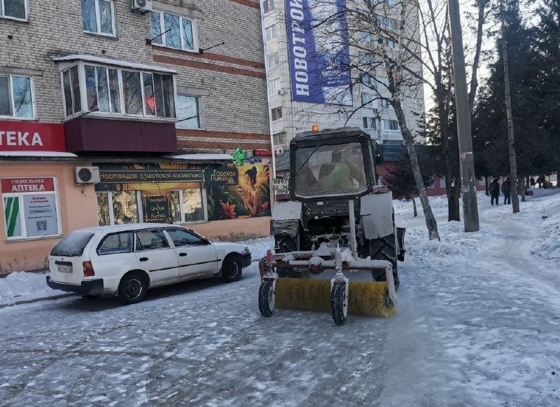 Каждую расчищенную территорию обрабатывают противогололедными материалами. Параллельно комбинированные дорожные машины ведут точечную работу по всему городу, обрабатывая места повышенной опасности — перекрёстки, пешеходные переходы.