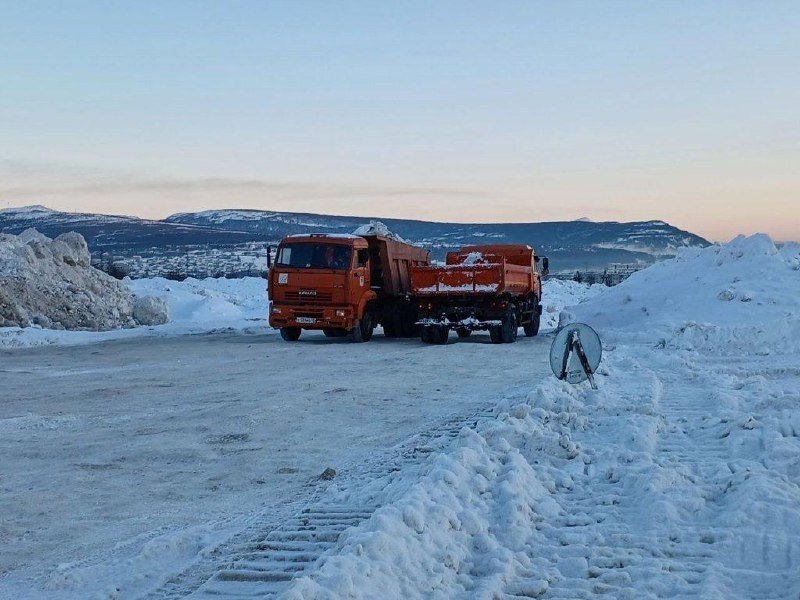 В городе традиционно развернули временный пункт складирования снега в Промышленном проезде. Здесь круглосуточно работают бульдозеры, которые разравнивают массы, формируют площадки для разгрузки и содержат в порядке подъездные пути. Ежесуточно на полигон вывозится более 1500 кубометров снега силами 10 самосвалов днем и пяти — ночью (их работа с декабря практически не останавливалась, потому как и снег практически не останавливался). За два зимних месяца объем перевезенного снега уже достиг отметки в 44 тысячи кубометров (здесь напомним, что за три дня из Владивостока вывезли 4,9 тысяч кубов). Специалисты уверяют, что резервов снегоприемного пункта городу хватит, несмотря на аномально снежный сезон. Ежедневно на улицы Магадана для борьбы со снежным покровом выходит до 60 единиц специализированной техники.