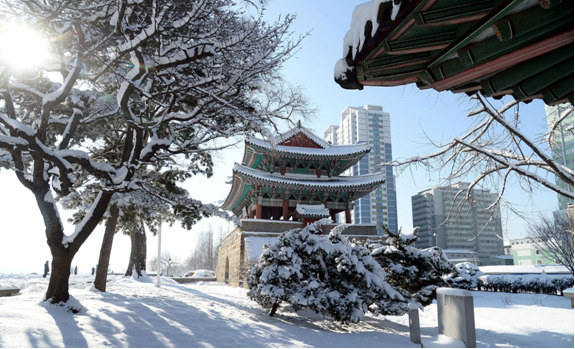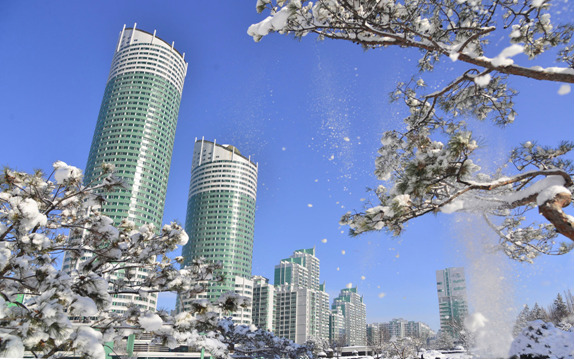 Снежный пейзаж Пхеньяна