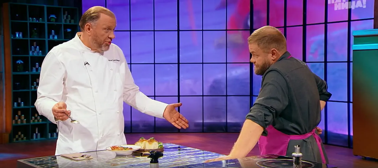 На первом этапе всем участникам надо было приготовить польский белый борщ. Дали час. Гостевский понятия не имел, как его готовить. Тогда к команде подошел Ивлев: «Если вы не знаете, что делать, делайте просто вкусно».
