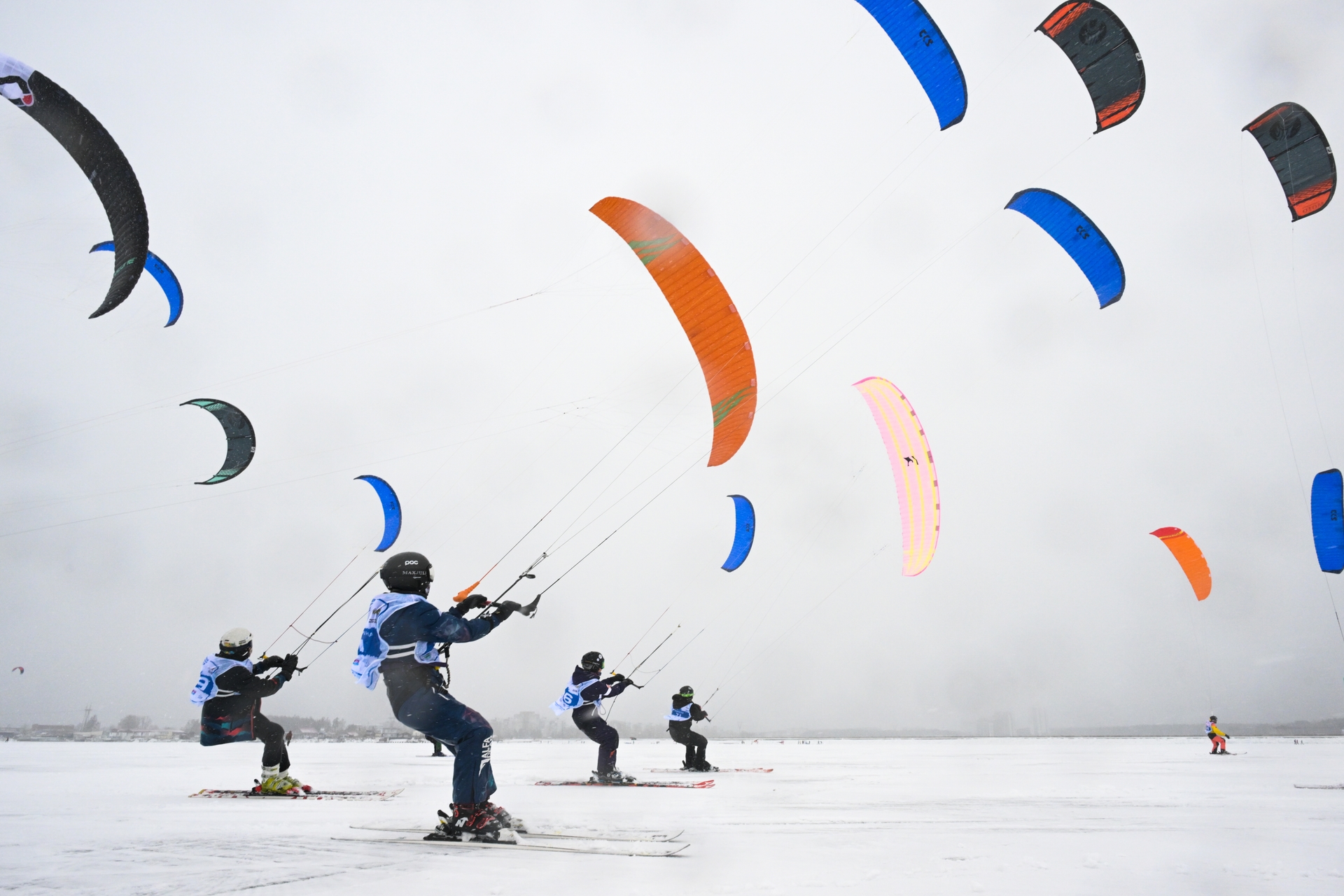 - Участники Кубка Сибири по сноукайтингу и зимнему виндсерфингу