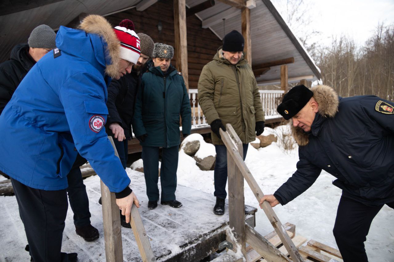 «В целом площадки готовы к водосвятию — сооружены иордани, уложены деревянные настилы с поручнями, завершается оборудование мест для обогрева и переодевания. Производится очистка от снега подходов к купелям и обработка их противогололедными материалами. Сотрудники служб безопасности четко знают свои задачи для того, чтобы все прошло в штатном режиме», — сообщил Александр Якушев.