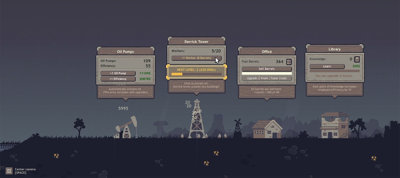 Игра начинается с простой добычи нефти и постепенно разрастается в сложную инфраструктуру. Игроки строят новые здания, модернизируют производства и открывают новые ресурсы. Добытую нефть можно продавать на собственных заправках, транспортировать поездами на другие континенты или отправлять на глобальные рынки.