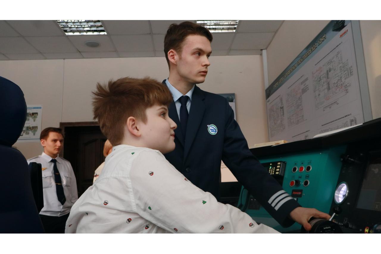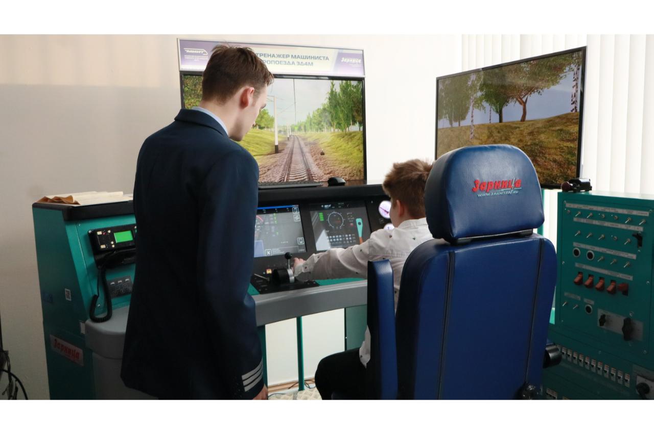 Студенты РУТ охотно показывали юному гостю тренажёры, объясняли, как работают тормозные системы, в каких ситуациях подаётся звуковой сигнал, и подробно отвечали на вопросы Мирона. Мальчик с воодушевлением рассказал, что у него есть большая детская железная дорога дома.
