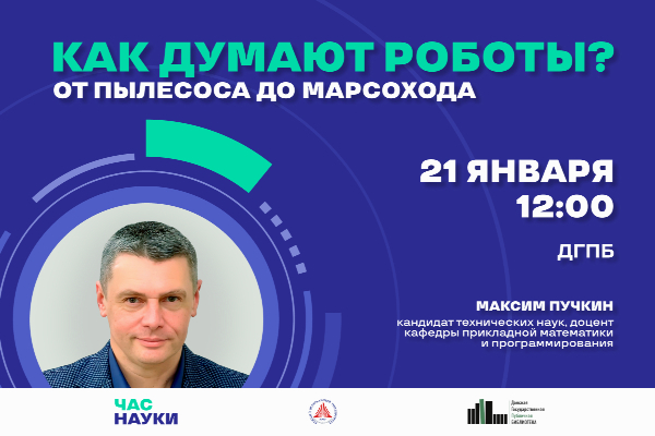 На лекции научно-популярного проекта «Час науки» школьники, их учителя, родители и все желающие узнают, чем «мышление» робота отличается от человеческого, какие алгоритмы лежат в основе работы умных устройств и почему робот-пылесос и марсоход решают задачи по-разному.
