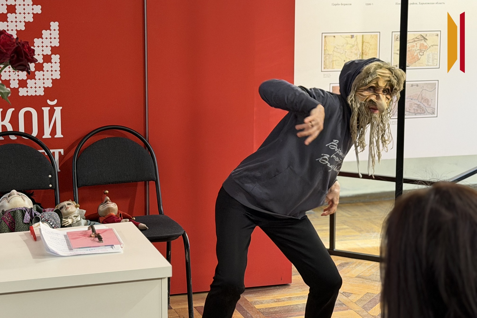 На встрече в музее Ечеина не только рассказывала, но и показывала. Принеся с собой сценический реквизит – три куклы, Татьяна наглядно разыгрывала с ними сценки, объясняя вначале принцип работы каждой модели. Кукла в ее руках мгновенно обретала характер, ритм и дыхание. Так, зрители узнали, что внутри маски скрыт «гапит» – сложный механизм, созданный индивидуально под актера, позволяющий кукле поворачивать голову, смотреть через плечо, жить в пространстве сцены. Простая на вид работа на деле требует точности, физической выносливости и абсолютного контроля над телом.