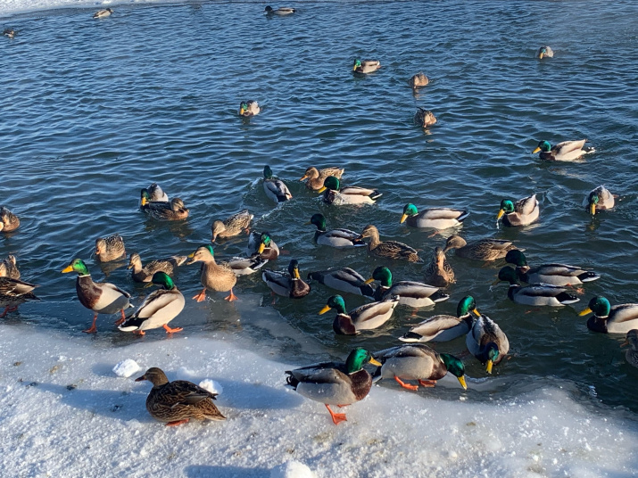Большинство водоплавающих птиц осенью покидает наши края и зимует в Западной и Южной Европе, на Каспии, в Индии, Китае и Юго-Восточной Азии. Но, значительная часть уток остается зимовать. Для того, чтобы выяснить, насколько важны для птиц «холодные зимовки», какие виды зимуют здесь и в каком количестве, Союз охраны птиц России проводит ежегодный среднезимний учёт водоплавающих птиц.