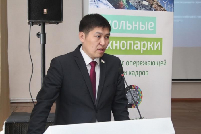 Зампред Анатолий Семенов занимал пост директора «Технопарка Якутия». На фото он выступает перед детскими технопарками.