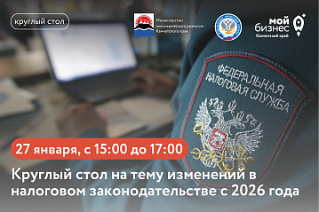 В связи с поступающими запросами от предпринимателей Камчатского края о необходимости разъяснений изменений налогового законодательства с 2026 года Министерством экономического развития Камчатского края совместно с УФНС России по Камчатскому краю планируется проведение «круглого стола» по актуальным для налогоплательщиков вопросам.